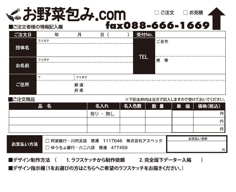 ファイル名は半角英数字で、必ずこちらから受付の際にお知らせした受付番号(例:yamada1020.ai)と拡張子『.ai』をつけて下さい。